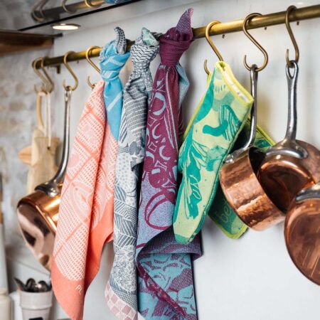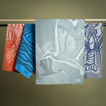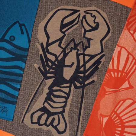 Elle explore avec brio une nouvelle surface, le tissu, en éditant une série de motifs sur le thème marin.