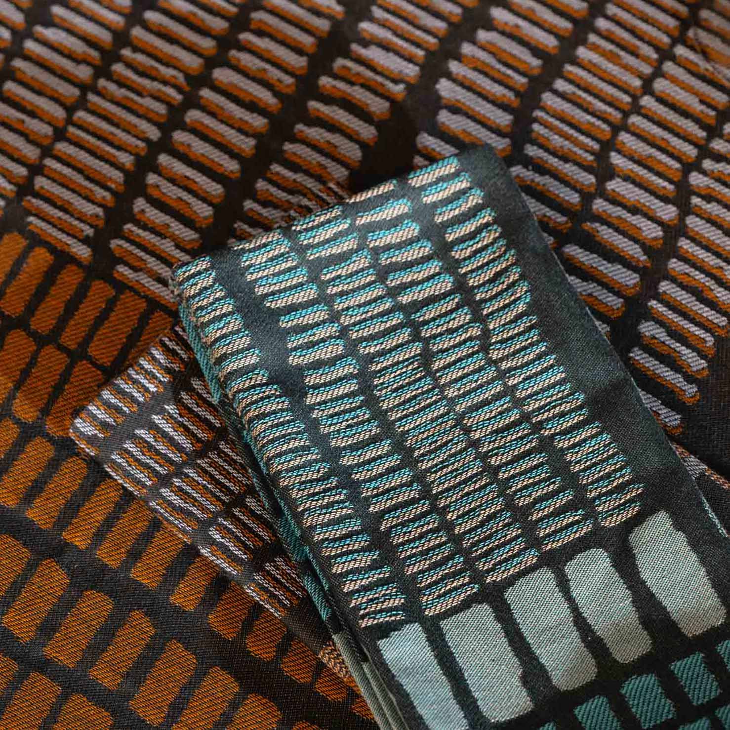 Fruit de la collaboration avec la créatrice textile Laure Vissian, la nappe Écailles invite le regard à suivre un jeu subtil de formes et de textures en mouvement. Inspirée par les éléments naturels et les reflets changeants de la lumière, elle est tissée en Jacquard dans notre atelier d’Orthez, affirmant que le linge de table est plus que jamais un terrain d’expression artistique.