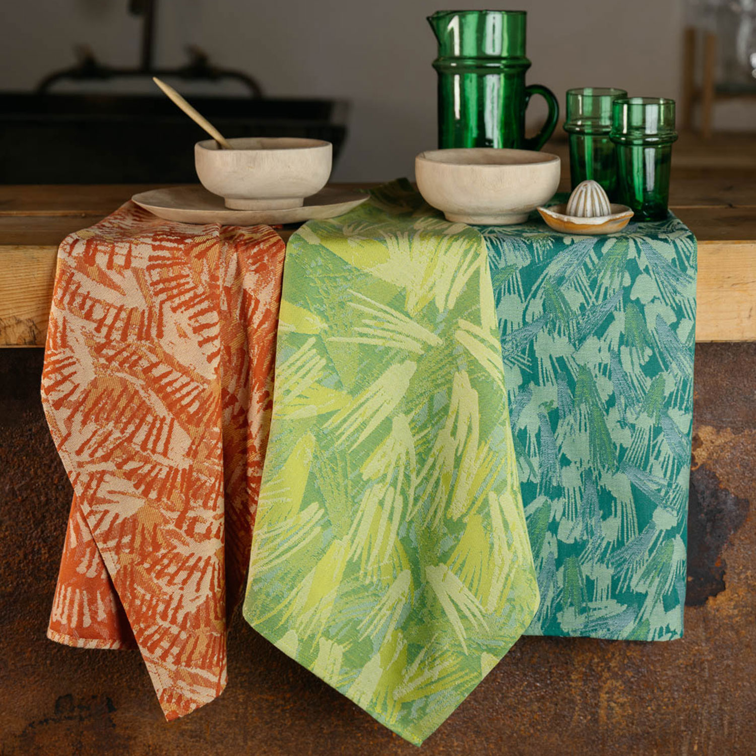 Coffret 3 torchons « SÈVE », « MOUSSE » & « ÉCORCE ».