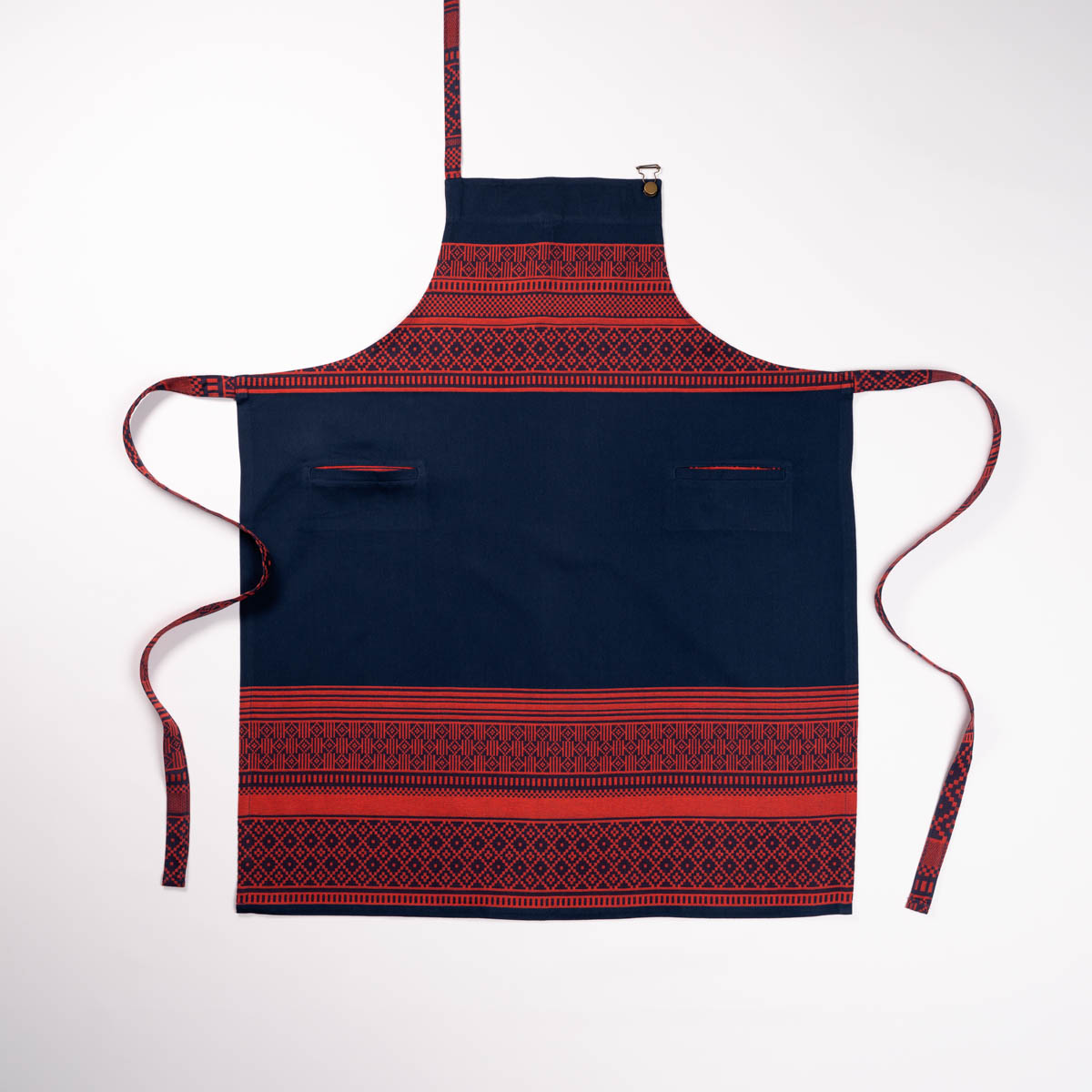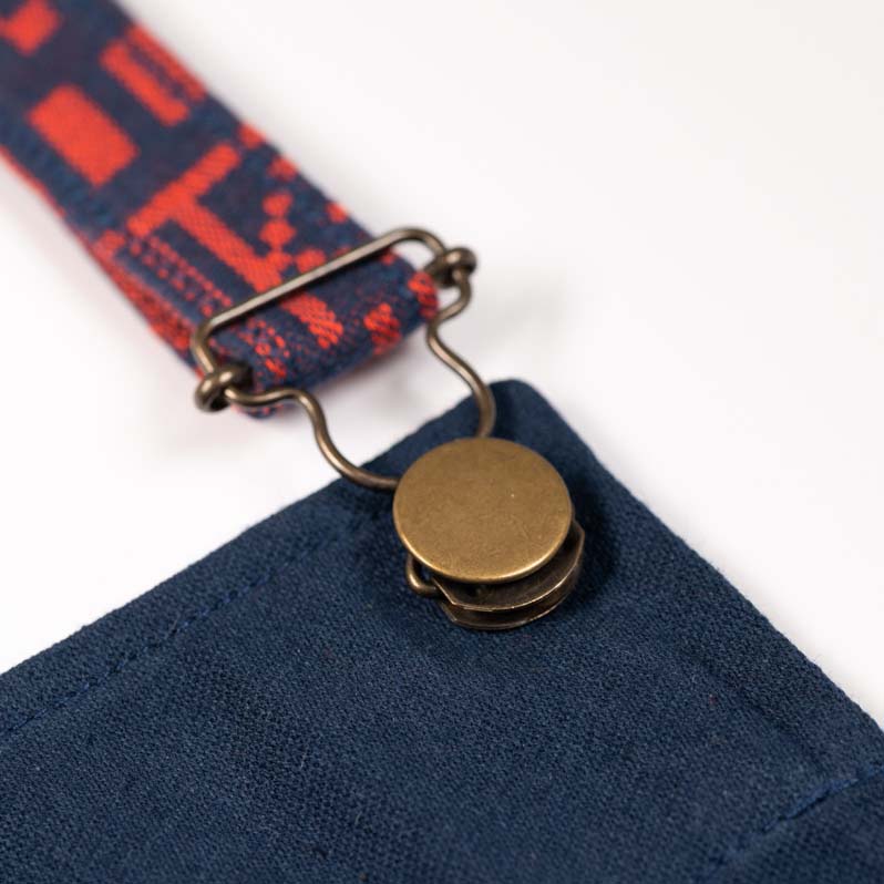 Le tablier « Licq Corail », création Tissage Moutet, appartient à la Collection Archives qui célèbre et rend hommage à plus de 100 ans de savoir-faire et de patrimoine. Il est l’interprétation en XXL d’un galon retrouvé dans nos archives de serviettes de table.